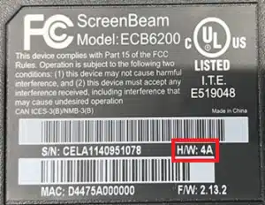 One of the first and most important steps in upgrading the firmware in the ECB6200 is to determine the hardware version. This information can be found at the bottom of the device on the FCC sticker. Installing the wrong firmware on the wrong hardware version can ruin your device. Please look at the example below on where to find the hardware version.