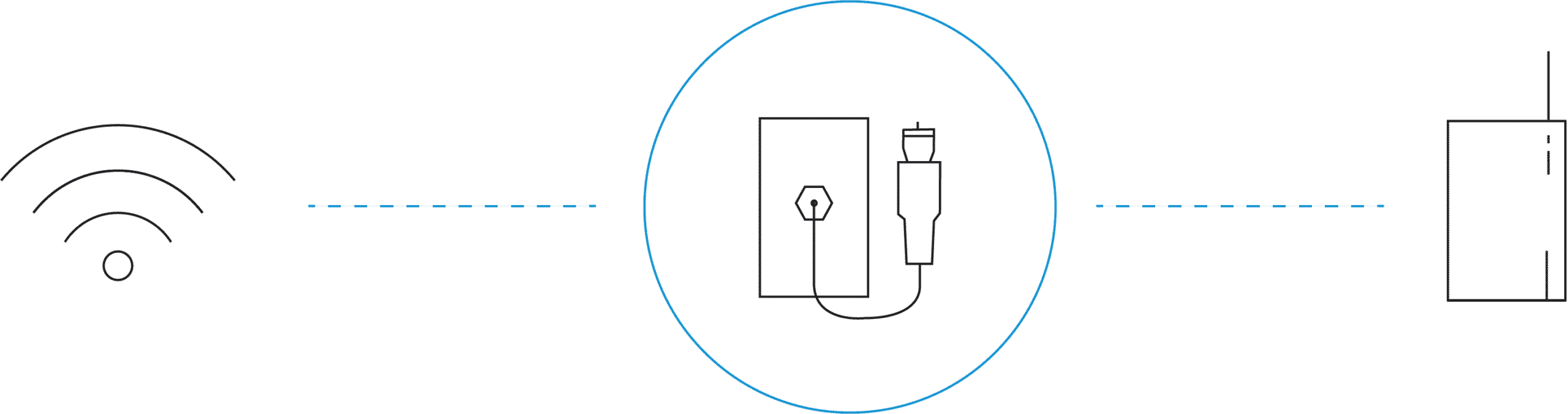 MoCA Adapters are an entirely wired solution. Typically you’ll get two MoCA Adapters in a kit. You connect one to your modem/router and another to your device that needs reliable, fast Internet (like a set top box or Blu-ray player) near a coaxial port. Sometimes modems or routers are already “MoCA enabled.” In this case, you will only need a single MoCA Adapter at the other end. One MoCA device communicates to the other, sending your Internet data through the coaxial wiring in your home.